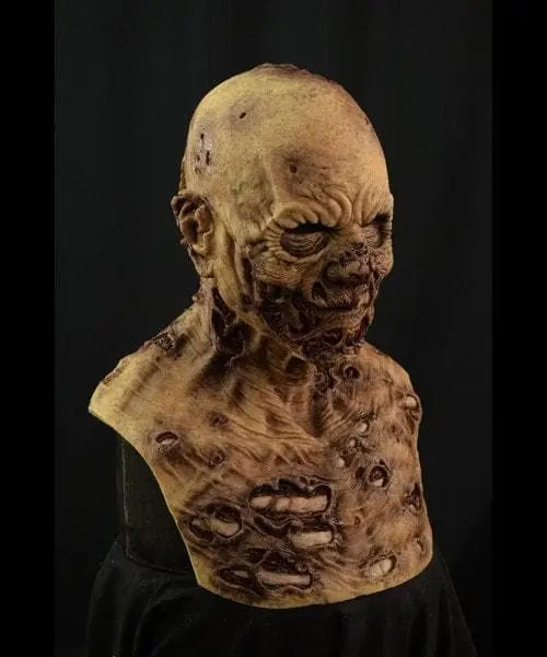 This decaying zombie has exposed teeth and ribs as his flesh rots off his bones. And get ready to really freak people out with the Scalp Flesh add-on, which uses magnets to adhere to the mask with easy removal!
