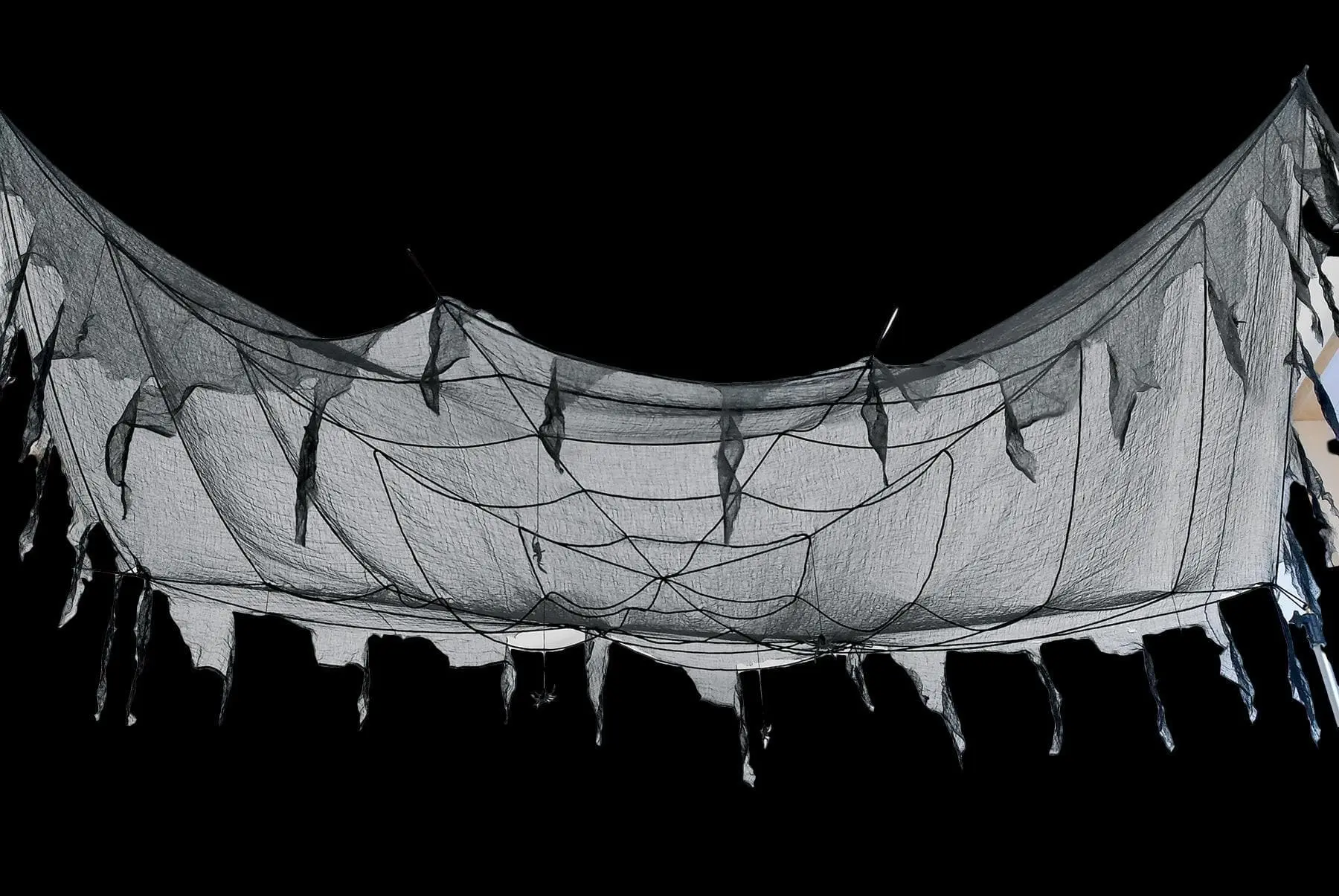Set the right mood for a spooky costume party with the Spiderweb Ceiling Tapestry decoration from The Horror Dome. If you’re a pro at throwing parties, you know atmosphere counts for a lot. From eerie lights, to creepy, yet fun music, goth-style candle holders, tablecloths and curtains, every detail matters. You put a lot of thought into your decorations. Don’t forget to do something interesting with you ceiling.