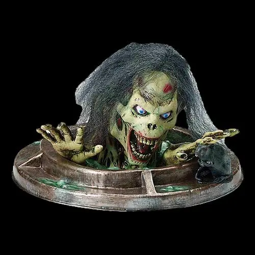 Looks like a horrible monster is crawling up from the sewer! This greenish skeletal creature with scraggly hair will be sure to scare all the trick-or-treaters coming through your yard! Measures approximately 20 x 20″, 12″ tall. Use indoors or out.