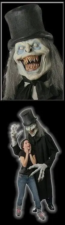 When morbid curiosity gets the best of you, you venture into a nightmarish realm. Let The Caretaker be your guide as you discover a demonic underworld of damned souls and eternal suffering. The perfect character for ushering your guests through a haunted house, this wise old chap has seen more than his fair share of supernatural events, darkness and depravity. Designed to add one foot to your height, almost anyone will seem imposing in this premium Halloween costume. The Night Terror Caretaker costume comes complete with an over the head mask, hand/arm extenders, and a long black, robe-like garment. Brilliantly crafted by inspired artists and designers at The Horror Dome, this classic ghoul has a permanent, devilish grin that exposes rows or sharp, pointy teeth, and dead-looking eyes that show no hint of empathy or compassion. Only the most intrepid trick or treaters will approach your home with The Caretaker standing watching over your front porch.