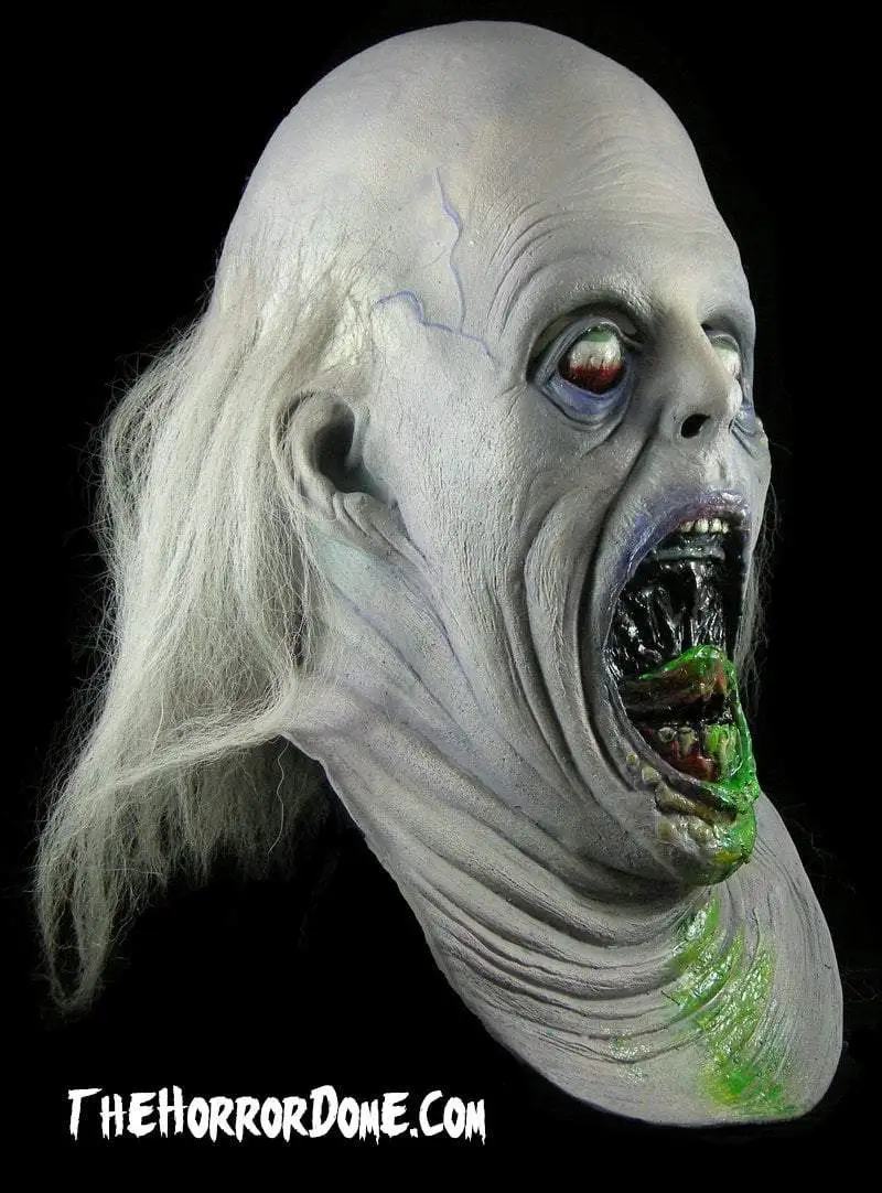 The Repossessed Demon Halloween mask will cap off the perfect costume this year. With rolled-back undead eyes, grey strands of cobweb-like hair protruding from a balding scalp, and a bloody mouth oozing green bile, this creation will strike fear into the hearts of even the most hardened trick or treater. Designed with chest and shoulder coverage, you’ll have a seamless fit for a Hollywood-quality look. Choose the Repossessed mask and send shivers down the spines of those unlucky enough to cross your path.