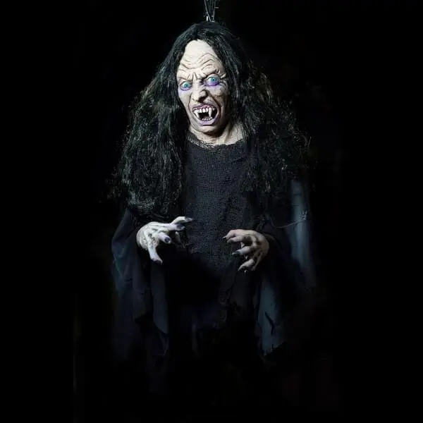 Blood Thirsty Vampire-Â The Blood Thirsty Vampire Halloween animatronic is perfect for a haunted house or holiday display centered around the popular vampire hunter theme. Custom made from high-quality materials, she’ll be a valued attraction, year after year. Gaze into her agonized eyes as she nears a slow and painful death.